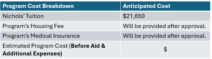 Program dates vary each semester depending on the program of your choice. Exact dates are set by the host program, not Nichols College.